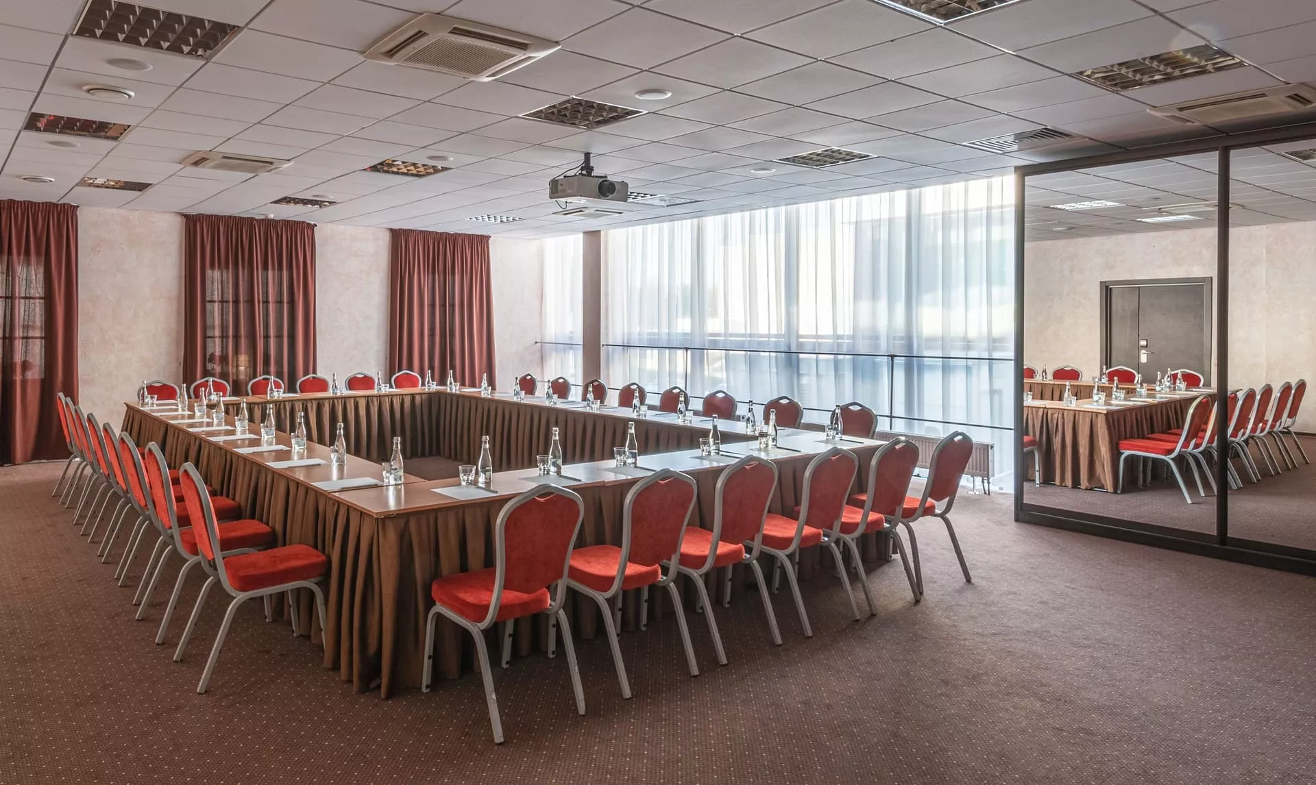Зал делится звуконепроницаемой перегородкой