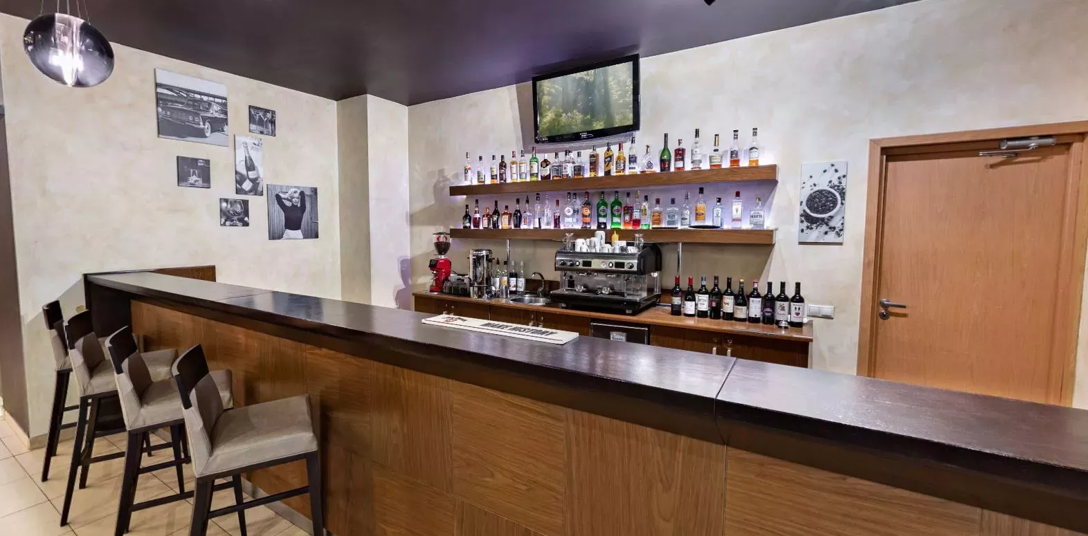 Уютный бар в лобби отеля - это прекрасная возможность выпить чашечку кофе перед отъездом или насладиться вечерним коктейлем после тяжелого дня.
